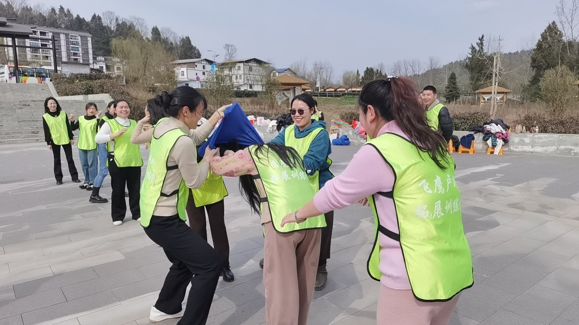 下午,女職工們?cè)隈嗰R水鄉(xiāng)碼頭廣場(chǎng)開(kāi)展了團(tuán)建活動(dòng)?;顒?dòng)開(kāi)始前,教官按照?qǐng)?bào)數(shù)的順序,將全體參與人員隨機(jī)分成了紅、黃、綠3個(gè)隊(duì),隊(duì)員們通過(guò)進(jìn)行輪流交換揉肩、捶背等放松活動(dòng)打破隔閡、消除尷尬,營(yíng)造了歡快活潑的團(tuán)隊(duì)氛圍。