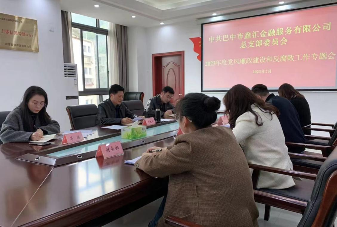 2月27日,中共巴中市鑫匯金融服務(wù)有限公司總支部委員會(huì)召開(kāi)黨風(fēng)廉政建設(shè)和反腐敗工作專(zhuān)題會(huì)議。公司黨總支書(shū)記、執(zhí)行董事、總經(jīng)理許大政主持會(huì)議并講話(huà),公司全體職工參加會(huì)議。