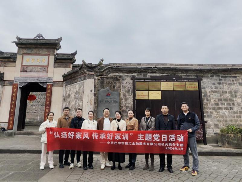 家風(fēng)正則黨風(fēng)清,家風(fēng)正則作風(fēng)優(yōu)。為進(jìn)一步弘揚(yáng)中華民族傳統(tǒng)美德,傳承良好家風(fēng)家訓(xùn),3月20日下午,中共巴中市鑫匯金融服務(wù)有限公司機(jī)關(guān)聯(lián)合支部前往平昌縣白衣古鎮(zhèn)開展“弘揚(yáng)好家風(fēng)·傳承好家訓(xùn)”主題黨日活動(dòng),機(jī)關(guān)聯(lián)合支部全體黨員參加。
